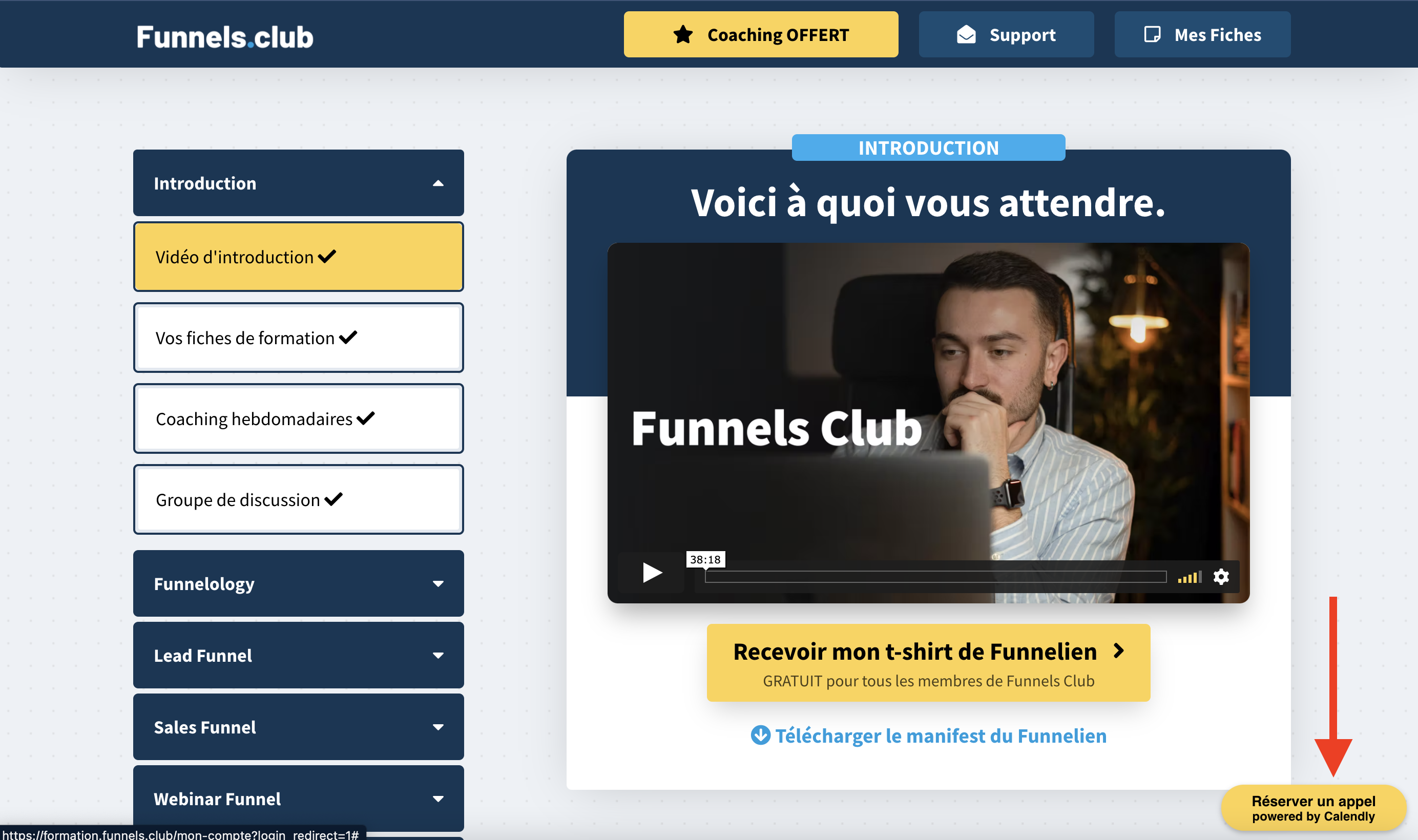 Vous pouvez rejoindre le groupe Funnels Club en passant par votre espace membre dans le module "introduction" puis "groupe de discussion". Il vous suffira alors simplement de cliquer sur le bouton jaune pour nous rejoindre.