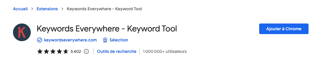 Keywords everywhere est une extension/un plugin qui permet de voir le volume des mots-clés donnés. L'extension ne s'installe qu'avec le navigateur Google Chrome ou Firefox. Voici comment procéder pour le mettre en place :